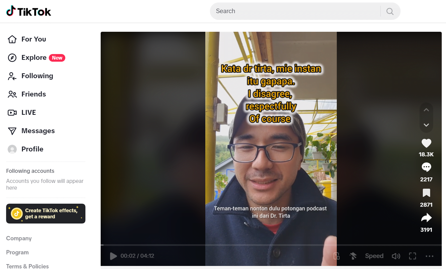 @felix.zulhendriProf Felix memberikan penjelasan ilmiah terkait bahaya mi instan. #miekesehatan♬ original sound – Felix Zulhendri