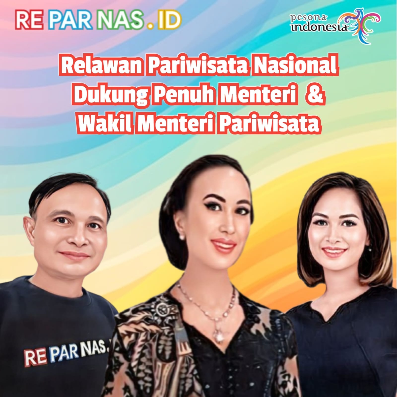 WANUA-MANADO – Ketua Umum Relawan Pariwisata Nasional (REPARNAS) H. Alvy Pongoh menyatakan dukungan kepada Menteri Pariwisata Widiyanti Putri Wardhana dan Wakil Menteri Pariwisata Ni Luh Puspa yang masuk dalam Kabinet Merah Putih dan telah dilantik oleh Presiden Republik Indonesia Prabowo Subianto.