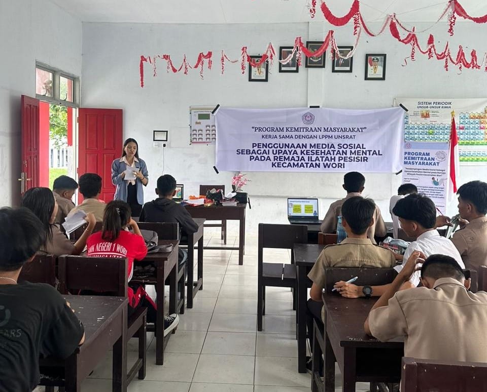 Universitas Sam Ratulangi (UNSRAT) mengadakan kegiatan pendampingan media sosial bagi siswa-siswi SMK Negeri 1 Wori pada 27 September 2024. Kegiatan ini merupakan bagian dari Program Kemitraan Masyarakat (PKM) Fakultas Kesehatan Masyarakat UNSRAT, yang bertujuan untuk meningkatkan kesadaran akan pentingnya kesehatan mental di kalangan remaja, terutama di wilayah pesisir Kecamatan Wori. Para peserta diajak untuk memahami penggunaan media sosial yang sehat dan positif, serta menghindari dampak negatif seperti cyberbullying dan kecanduan.